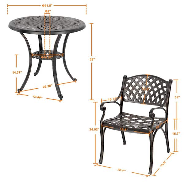 • Includes 1 cast aluminum table and 2 chairs, floral pattern