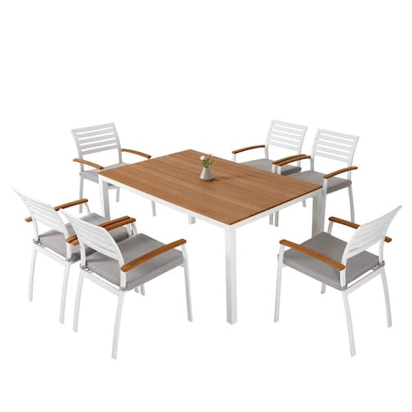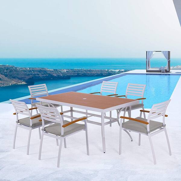 7-Piece Aluminum Polywood Outdoor Dining Set with Creamy White Cushions