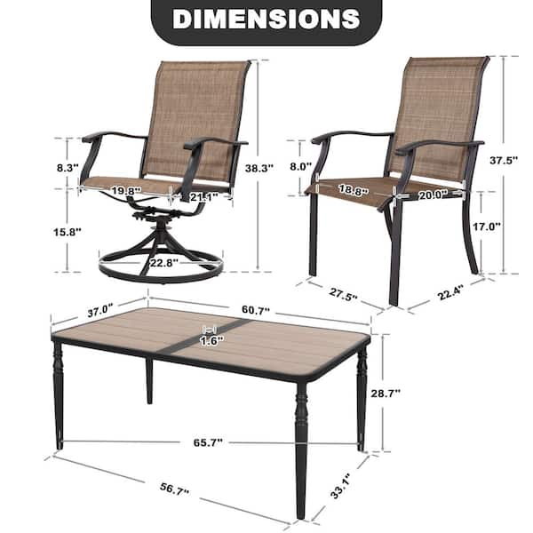 Black 7-Piece Textilene and Metal Rectangle Outdoor Dining Set with Umbrella Hole, Wood-Grain Tabletop and Swivel Design
