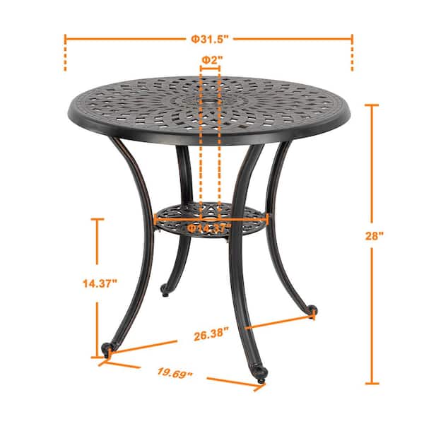 Black with Gold-painted Edge Round Cast Aluminum Outdoor 31 in. Bistro Table with 2 in. Umbrella Hole
