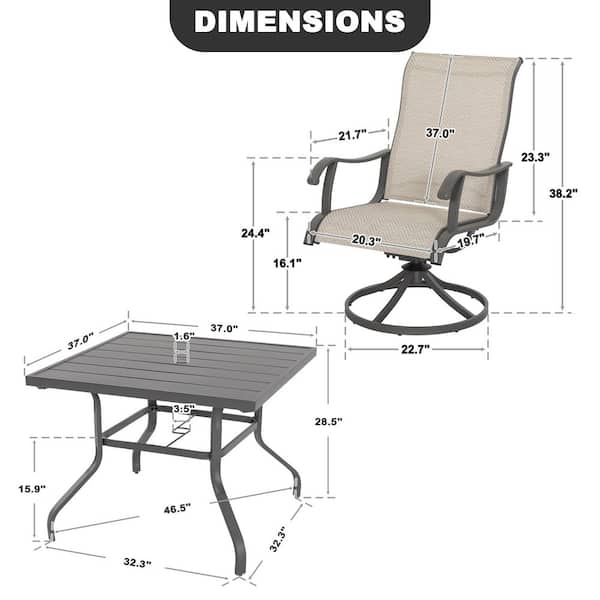 Gray 5-Piece Metal Square Outdoor Dining Set with 4 Swivel Textilene Chairs and Umbrella Hole