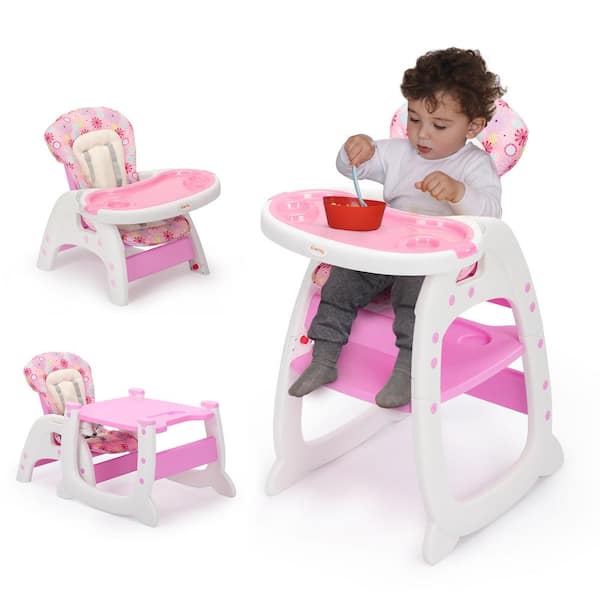 3-in-1 Convertible Toddler High Chair Table Baby Booster Seat with Feeding Tray, Pink