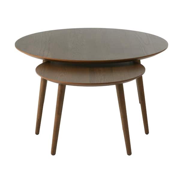 Freya 34.65 in. Smoked Oak Wood Nesting End Table with Circular Top