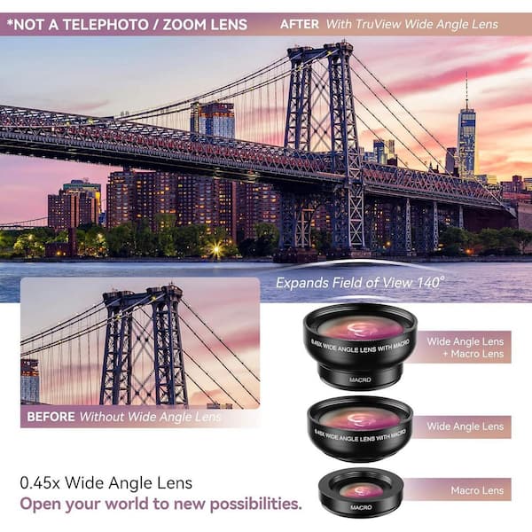 2 in 1 Phone Camera Lens Kit for iPhone Android 12.5X Macro 0.45X Wide Angle Lens with Travel Bag