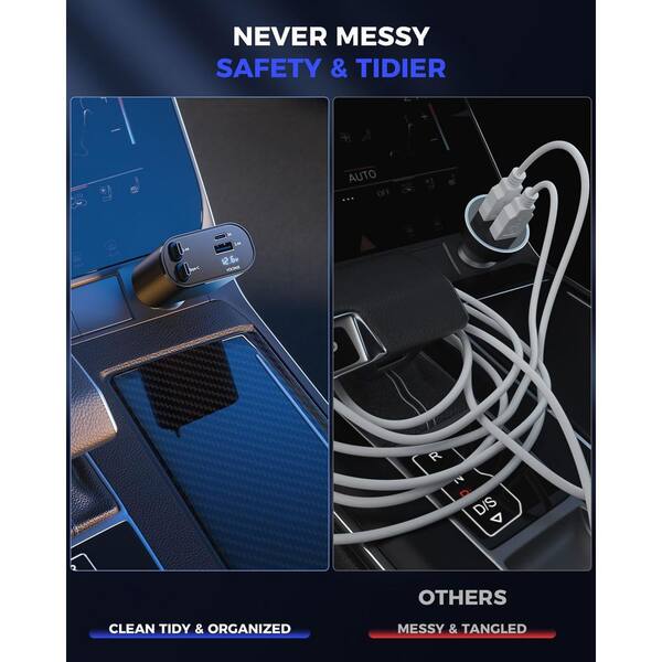 4-in-1 Retractable Car Dual Type C Cable USB C Port Car Charger Adapter PD 60W Fast Charging for iPhone iPad Airpods
