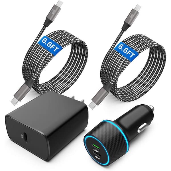 45W USB-C Super Fast Charger Wall/Car Adapter for Samsung Galaxy S25/S24/S23 Ultra with 2-Pack 6.6 ft. Cables
