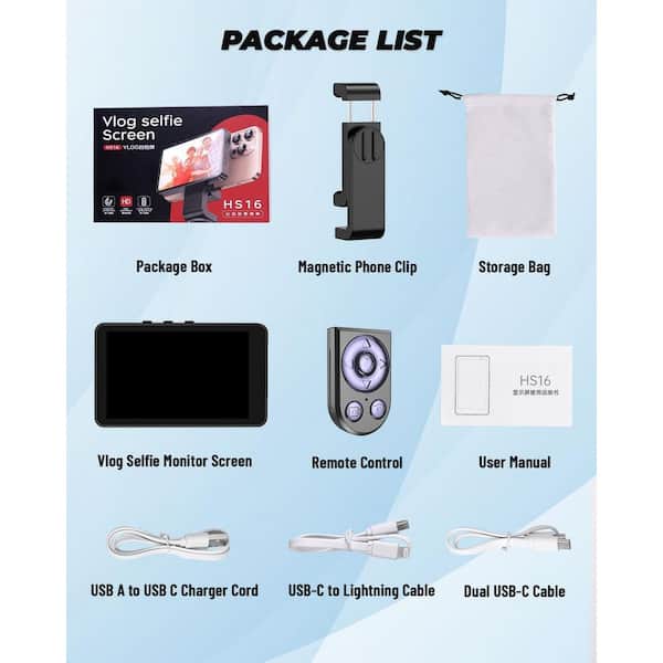 5 Vlog Selfie Monitor with Magnetic Phone Clip for iPhone/Android 4K/1080P Recording Sync Rear Camera