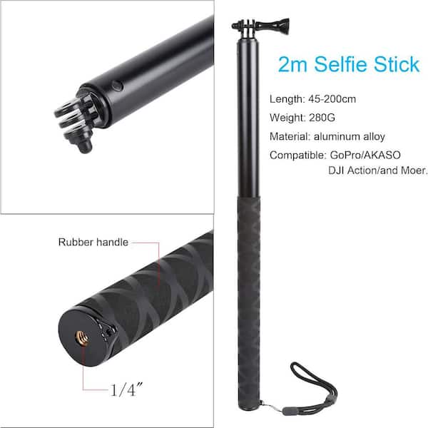 • 79 in. long selfie stick for action cameras