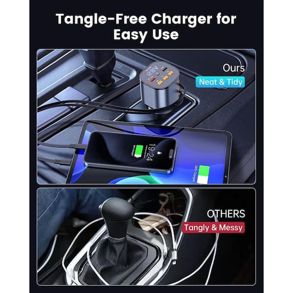 81-Watt Retractable PD Car Charger Bluetooth 5.3 FM Transmitter Hands-Free Calling MP3 Player USB LED Display Black