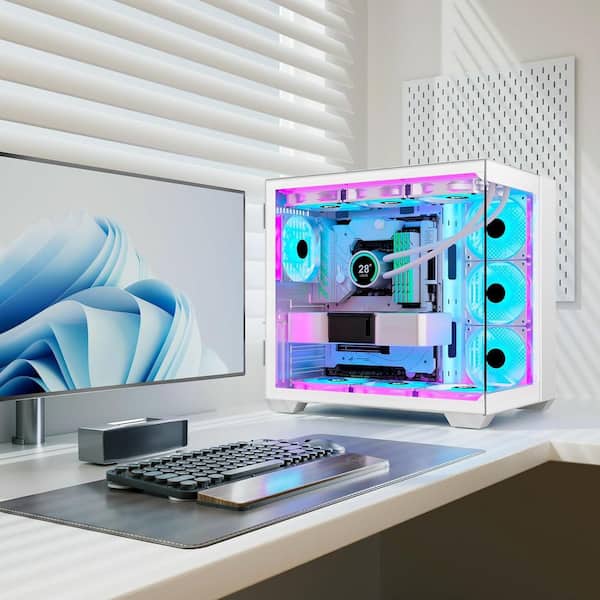 ATX Mid-Tower Gaming PC Case with 270° Panoramic Glass, 6 PWM ARGB Fans, Type-C Port in White