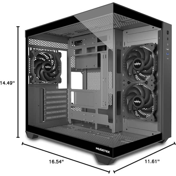 ATX PC Case with 3 x 120mm Fans, 360MM RAD Support, 270° Full View Tempered Glass, Mid Tower, Black