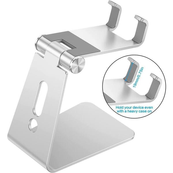 Adjustable Cell Phone Stand with Anti-Slip Base and Charging Port, Fits All Smart Phones, Silver, 270° Rotation