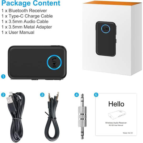 Bluetooth 5.3 Music Receiver for Car/Home Stereo Aux Adapter with Volume Control Supports Hands Free Calls 16H Batt Life