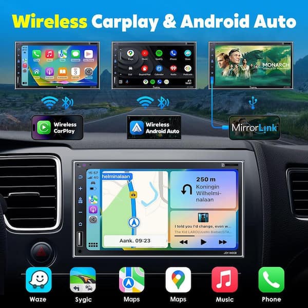 Double Din Car Stereo 7 in. Full HD Touchscreen Bluetooth Wireless Apple Carplay Android Auto Backup Camera