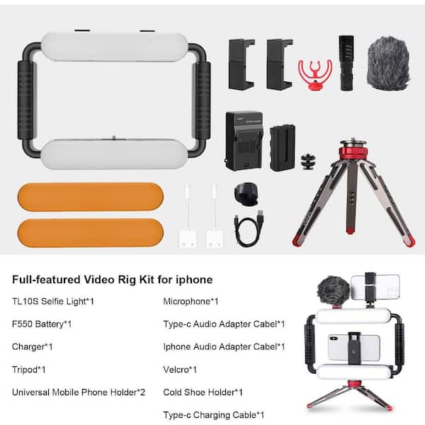 Gimbal Stabilizer Smartphone Video Light Kit 5600K LED with Microphone Tripod for Recording Vlogging Live Streaming