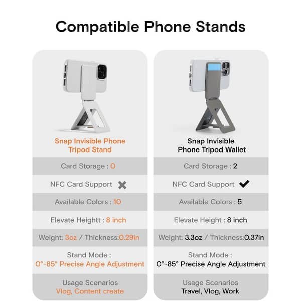 Phone Tripod Stand Compatible with iPhone Series Angle Adjustment Magnets Vegan Leather Invisible Selfie Stick Jet Black