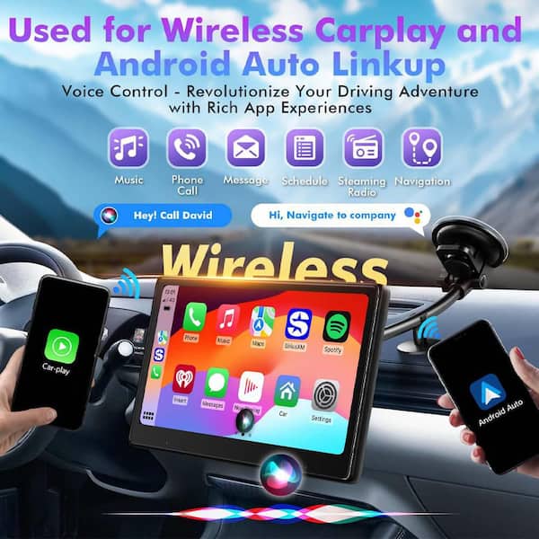 Portable 10 in. Touch Screen Car Stereo with Wireless Apple CarPlay and Android Auto in Black (1-Pack)