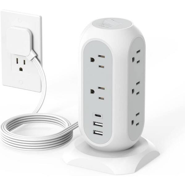 Power Strip Tower Flat Plug with 11 Outlets and 3 USB Ports (1 USB C) 1625W/13A 1050J Surge Protection 6 ft. Cord