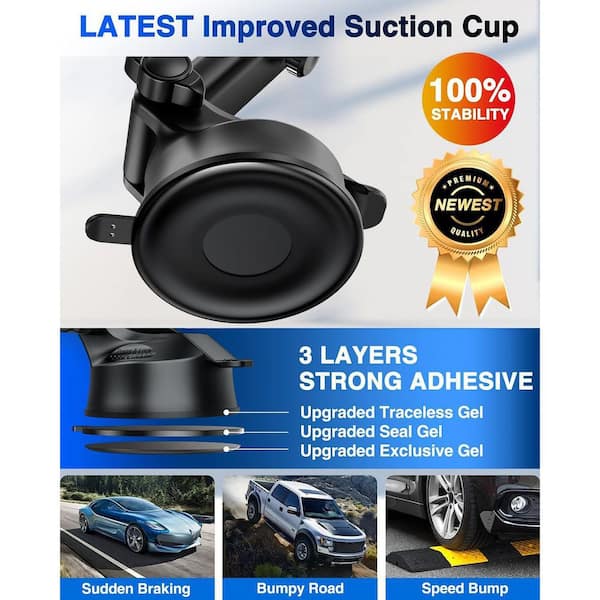 Ultimate Car Phone Mount with 80+LBS Suction and Military-Grade Certs for Dashboard Windshield Vent iPhone Samsung Black