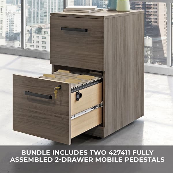 Affirm 71.102 in. x 36 in. D Hudson Elm Bowfront Desk with (2 Assembled) 2-Drawer Mobile File Cabinets