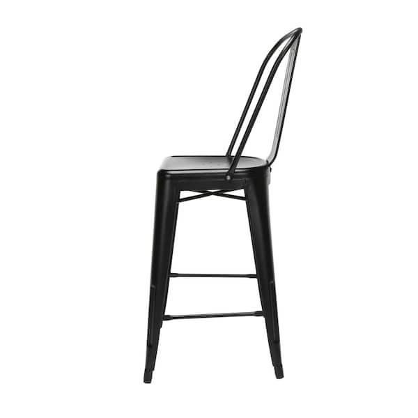 161 Collection Industrial Modern 4 Pack 26" High Back Metal Indoor/Outdoor Bar Stools, in Black