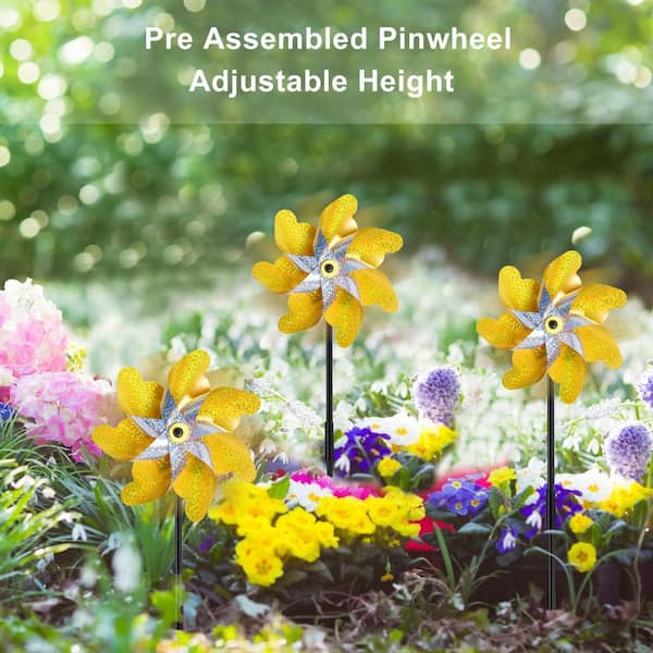 10 Pack Reflective Pinwheels with Stakes, 19.7 in. Pre-Assembled Sparkle Pin Wheel for Scare Birds, Gold