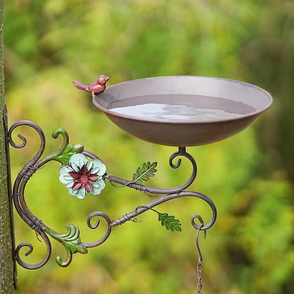 11 in. Wall Mounted Birdbath and Hanging Birdhouse in Grey, Bird Baths for Back Yard, Deck and Patio Deco