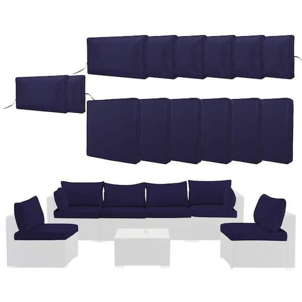 14-Piece Navy Blue Outdoor Cushion Cover Set with Zipper for 6-Seater Wicker Rattan Sectional Sofa
