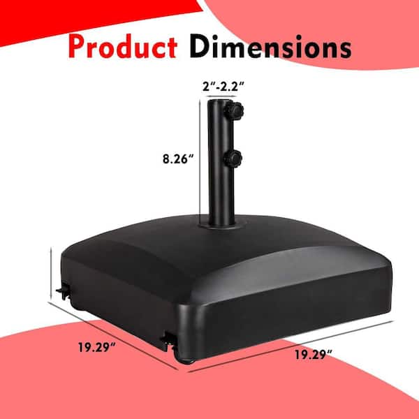 19.29 in. Square Patio Umbrella Base in Black with 4 Wheels for 1.5 in. to 1.875 in. Pole