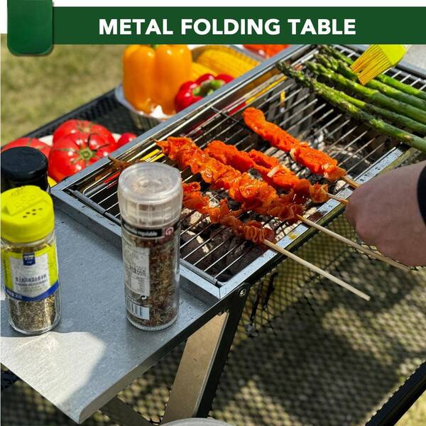 24 in. Black Rectangle Iron Portable Picnic Tables, Small Folding Table for Grill, Camping and Garden
