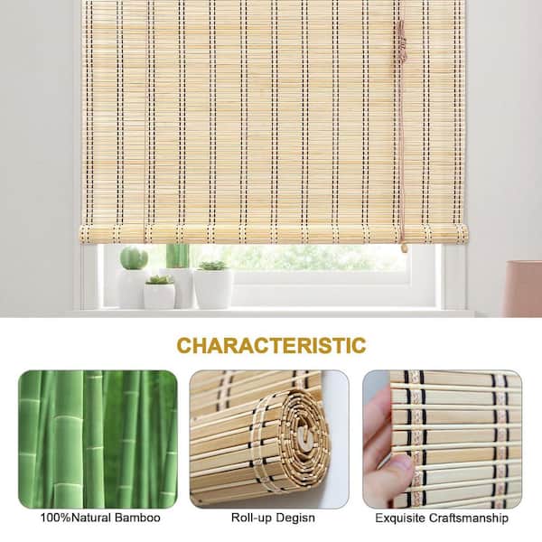 36 in. L x 24 in. W Bamboo Blinds for Indoor and Outdoor, Block 70% of Sunlight, Easy to Install, Brown