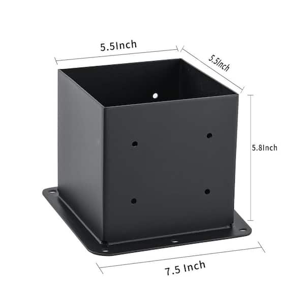 4-Pack 6 in. x 6 in. Black Metal Post Base, Deck Post Bracket, Post Anchor, Pergola Bracket, Fence Kit