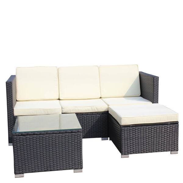 5-Piece Wicker Outdoor Sectional Set with Beige Cushions, Patio Sofa Set with Coffee Table