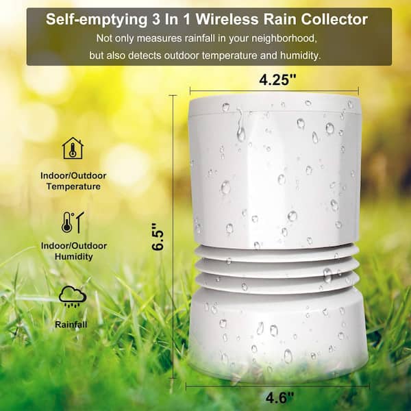 5 in 1 Self-Emptying Wireless Rain Gauge, Digital Rain Gauge with Backlit Weather Station for Garden