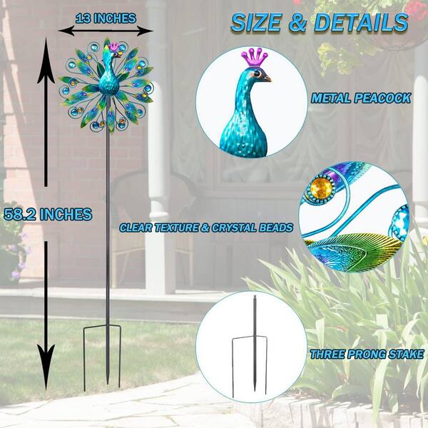 58 in. Metal Outdoor Peacock Wind Spinner, Peacock Wind Sculpture for Garden, Yard and Patio