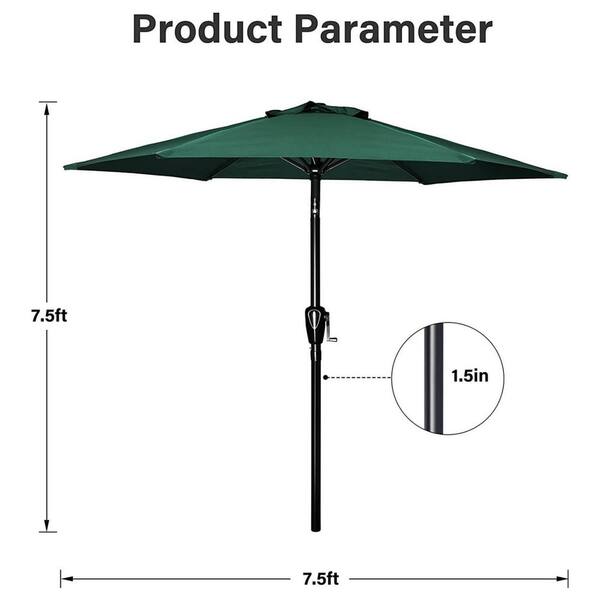 7.5 ft. Iron Crank Market Patio Umbrella in Green with Tilt