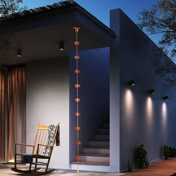 8.5 ft. Copper Plated Lotus Rain Chain Cups, Rain Chain for Gutters Downspouts Outside