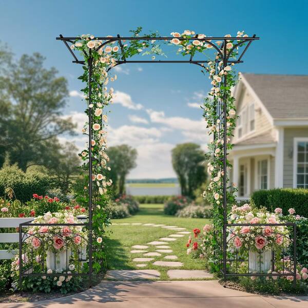81 in. H Garden Arch Trellis with Planter Boxes for Climbing Plants Backyard and Lawn Black