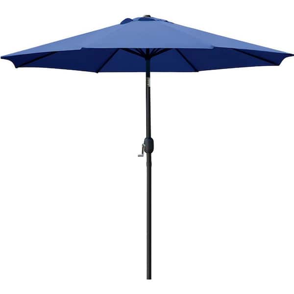 9 ft. Aluminum Market Crank and Tilt Patio Umbrella in Blue