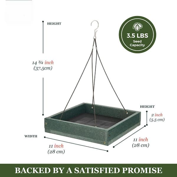 Platform Bird Feeder for Outside, Recycled Plastic Hanging Tray Bird Feeders with Large Capacity 3.5 lbs.