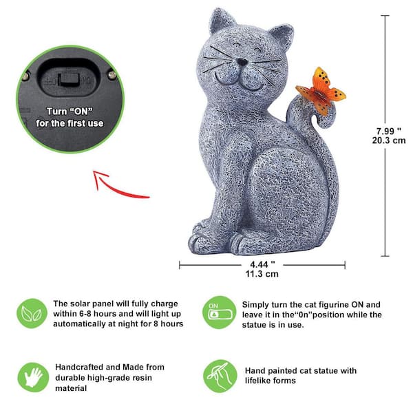Solar Cat Outdoor Statues with Butterfly for Garden, Patio and Lawn