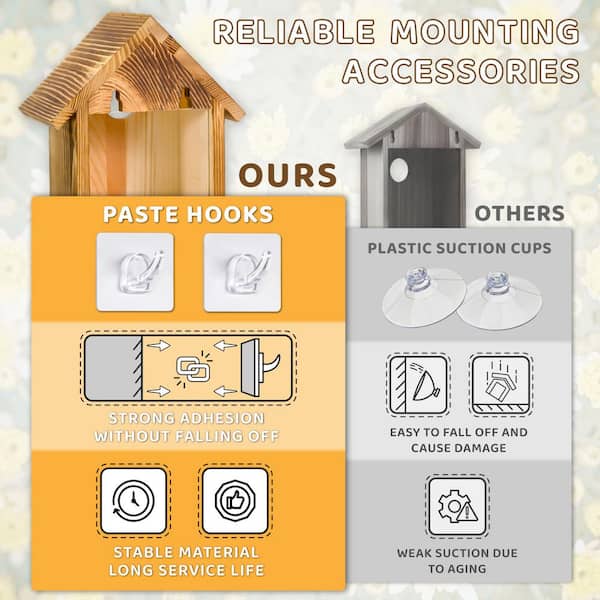 Window Bird Houses for Outside with 2 Powerful Hooks, Clear Hanging Wooden Birdhouses for Viewing Inside