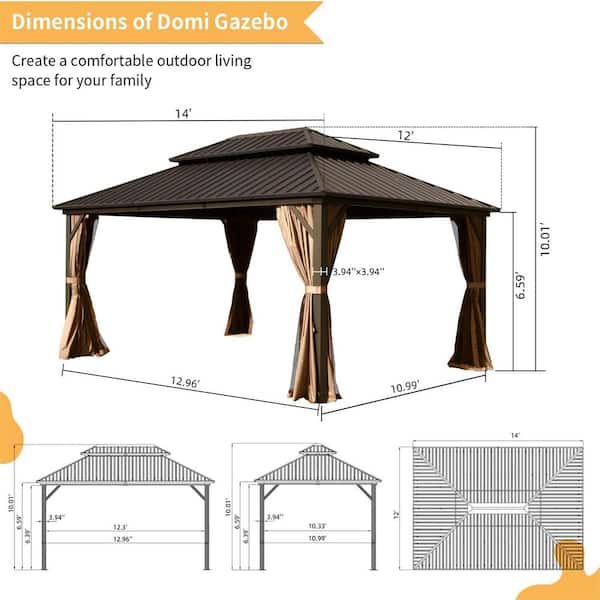 12 ft. x 14 ft. Hardtop Gazebo Metal Gazebo with Galvanized Steel Double Roof Canopy, Curtain and Netting
