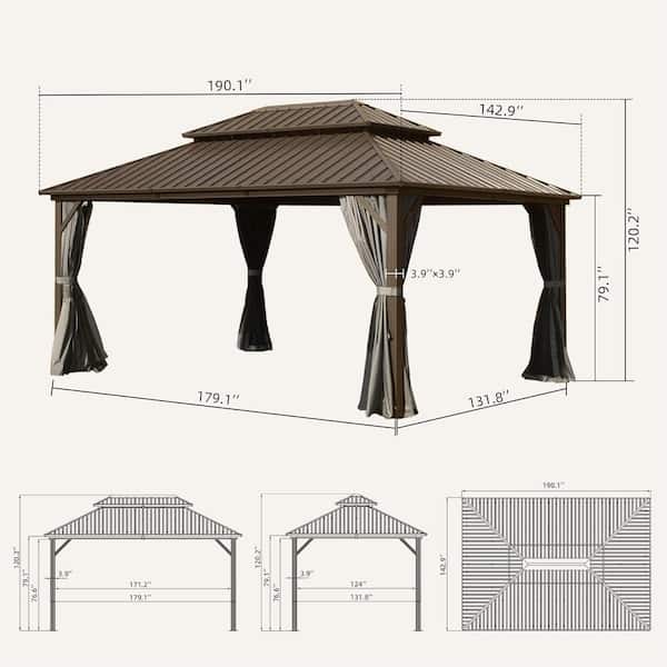 12 ft. x 16 ft. Hardtop Gazebo Metal Gazebo with Galvanized Steel Double Roof Canopy, Curtain and Netting
