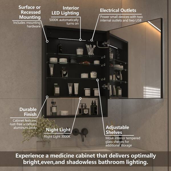24.01 in. W x 32 in. H Rectangular LED Anti-Fog Medicine Cabinet with Mirror, External Shelf, Open on the Right