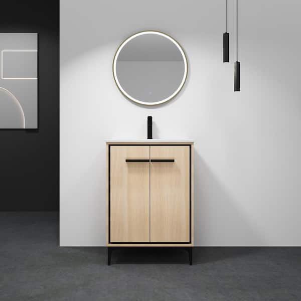 24 in. W x 18 in. D x 33.8 in. H Single Sink Bath Vanity in Oak with White Ceramic Top