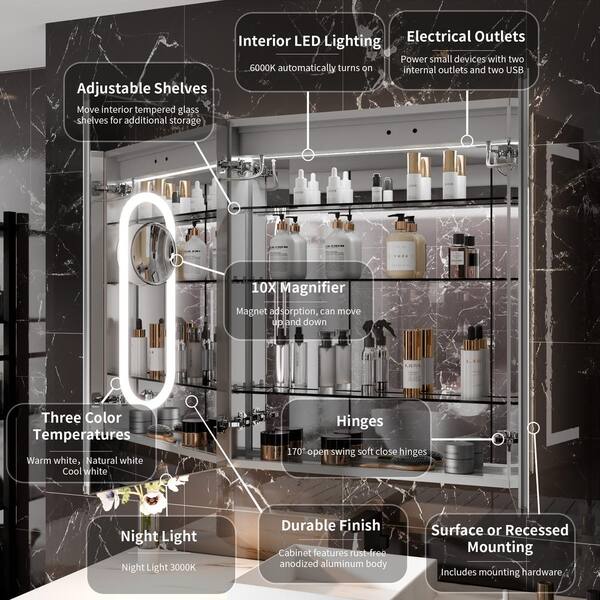 30 in. W x 36 in. H Rectangular LED Anti-Fog Medicine Cabinet with Mirror
