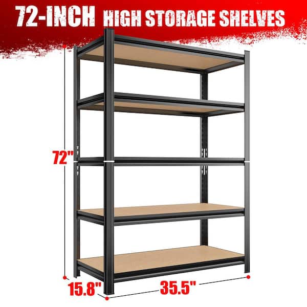 35.5 in. W 5-Tier Black Heavy-Duty Metal Pantry Organizer with Adjustable Shelves