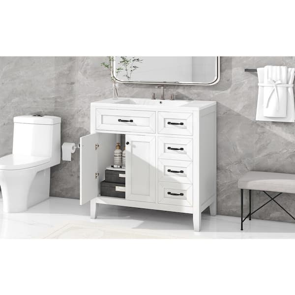 36 in. W x 18 in. D x 36 in. H Single Sink Bath Vanity in White with White Ceramic Top