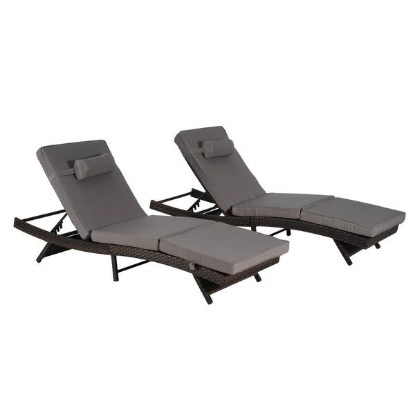 Brown Wicker Outdoor Chaise Lounge with Dark Gray Cushions and Adjustale Backrest (Set-2)